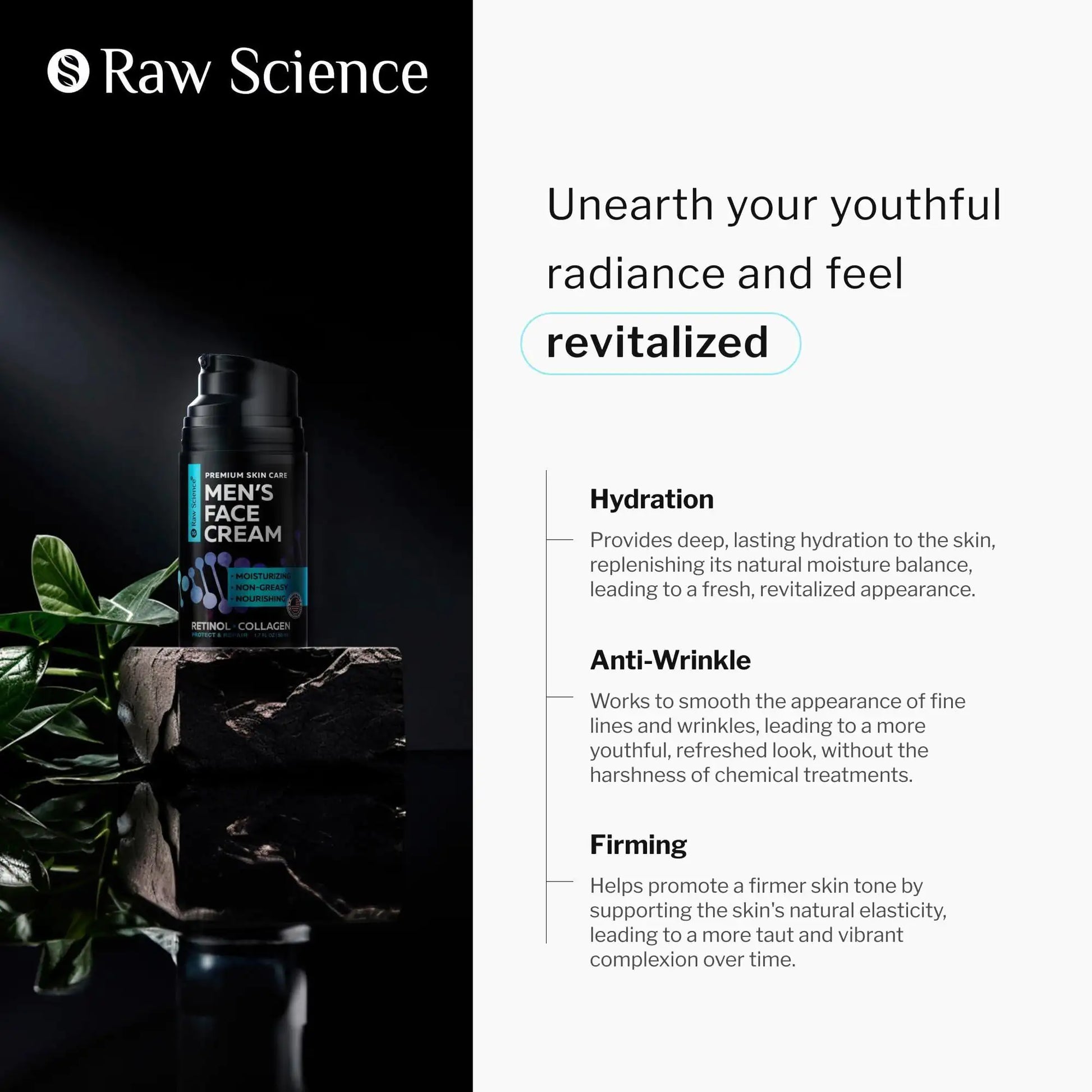 MENS SKIN CARE- Experience the ultimate men care with our Mens Face Cream, a facial moisturizer with retinol. This potent formula combines Hyaluronic Acid and Collagen for men's anti-aging benefits, ensuring deep moisturizing and unrivaled wrinkle resistance. The light formula of face moisturizer for men can be compared with face lotion.