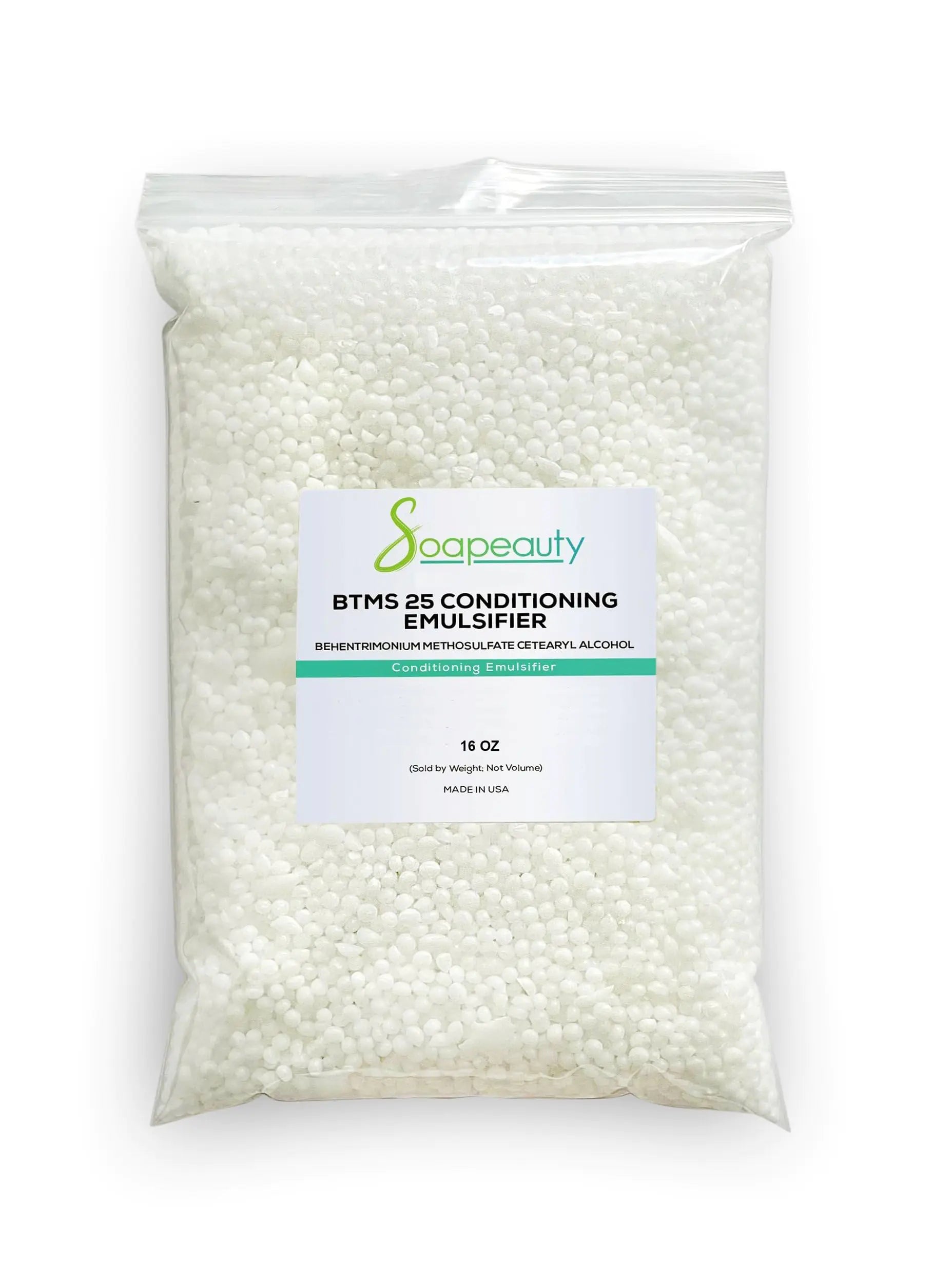 BTMS 25 is a mild and effective conditioning emulsifier ideal for hair care 💇♀️ skin care 🧴 and other personal care formulations. Proudly Made in the USA it combines the conditioning power of Behentrimonium Methosulfate (from rapeseed oil 🌱) and the stabilizing effects of Cetearyl Alcohol providing both nourishment and stability to your creations. 🌟Key Features:✨ Superior Conditioning and Detangling: Makes hair soft smooth and easy to detangle.🧪 Emulsifying Power: Blends oils and water seamlessly for stable creamy formulations.💼 Versatile Use: Perfect for conditioners leave-in treatments lotions and creams. 😊 Gentle and Mild: Safe for all skin types and everyday use.💧 Lightweight Feel: Leaves hair and skin with a non-greasy soft finish.🇺🇸 Made in the USA: High-quality and manufactured locally to ensure top standards.Popular Applications:💆♀️ Hair Conditioners & Masks✨ Leave-in Conditioners🧴 Lotions and Creams🧈 Body Butters and EmulsionsWhether youre creating a nourishing conditioner or a rich body cream BTMS 25 is your go-to ingredient for delivering professional results in conditioning and emulsifying proudly made in the USA 🇺🇸🧴💆♀️.